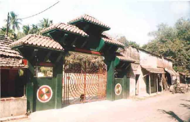 A huge gate has recently been built at the main entrance to the complex. The temple, surrounded by a low wall, is situated in one corner of the compound. Its entrance is quite small and one has to crouch to get in.