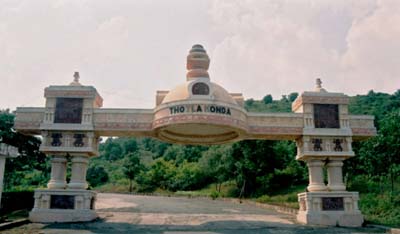 A newly built gate in the ancient Buddhist style welcomed us to Thotlakonda. A winding road past a Buddha statue took us to the hilltop housing the ancient ruins.